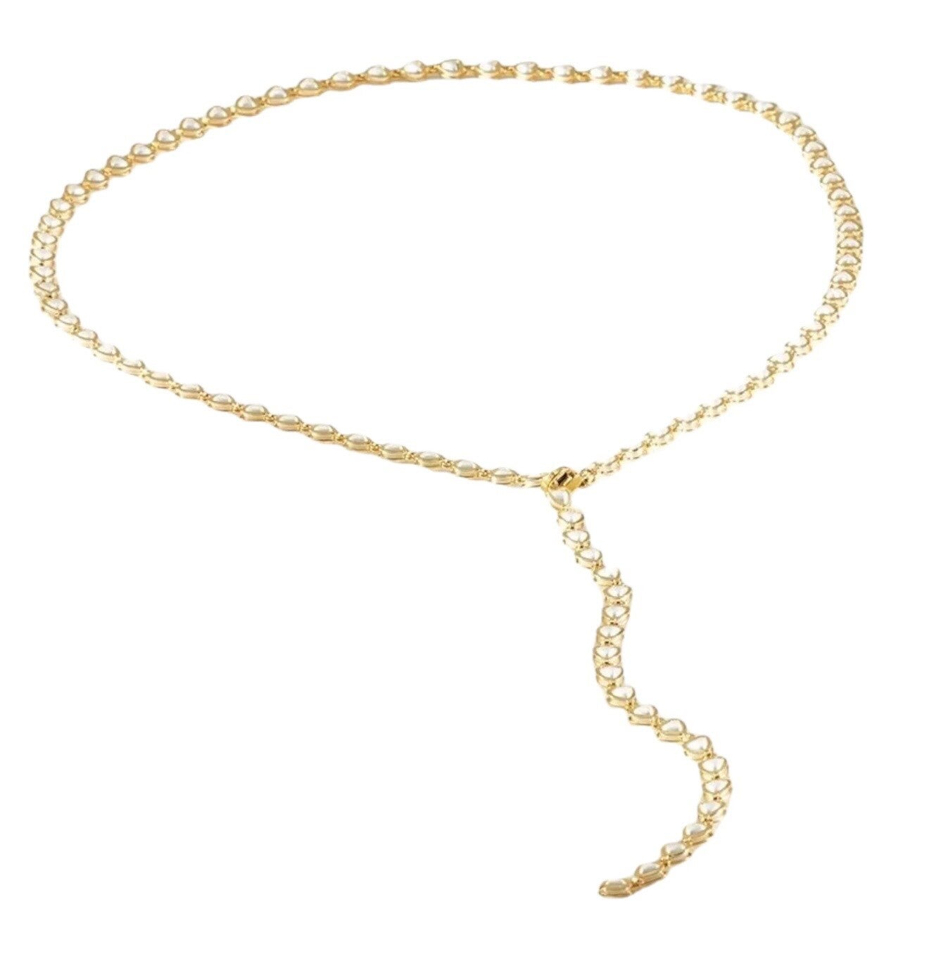 Voeg een vleugje elegantie toe aan je outfit met deze verfijnde Y-ketting, afgewerkt met subtiele parelachtige kralen. De speelse lengte en het chique ontwerp maken dit sieraad perfect om te dragen bij een diepe halslijn of bovenop een satijnen blouse. De ketting vangt het licht prachtig en zorgt voor een vrouwelijke en sierlijke uitstraling – ideaal voor feestelijke gelegenheden of een romantische avond uit.