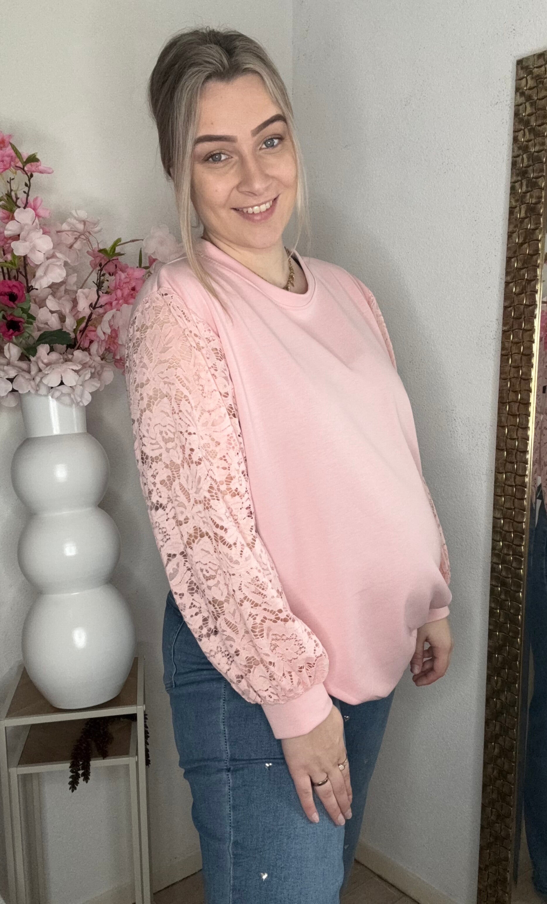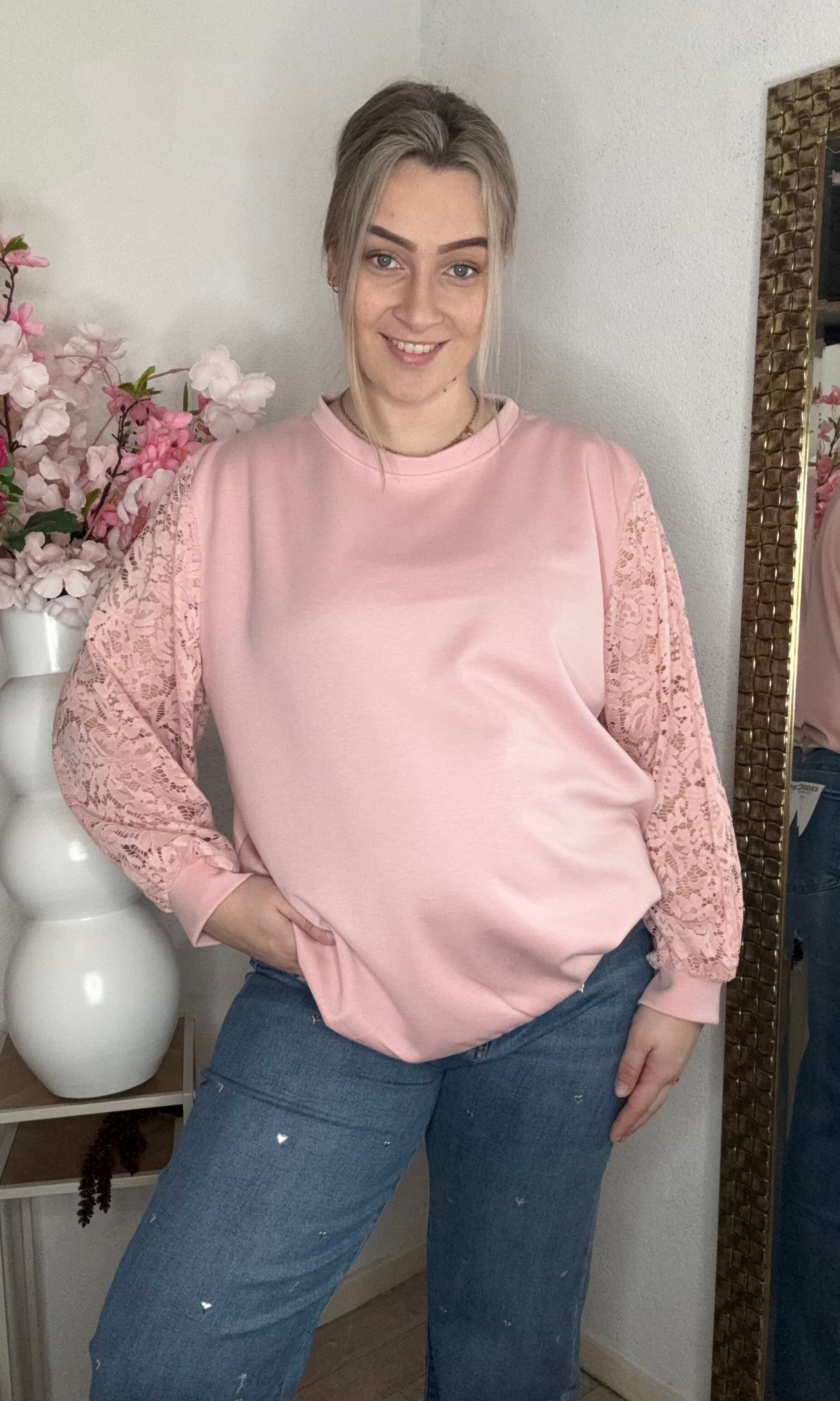 Heerlijk zittende trui met kanten mouwen!