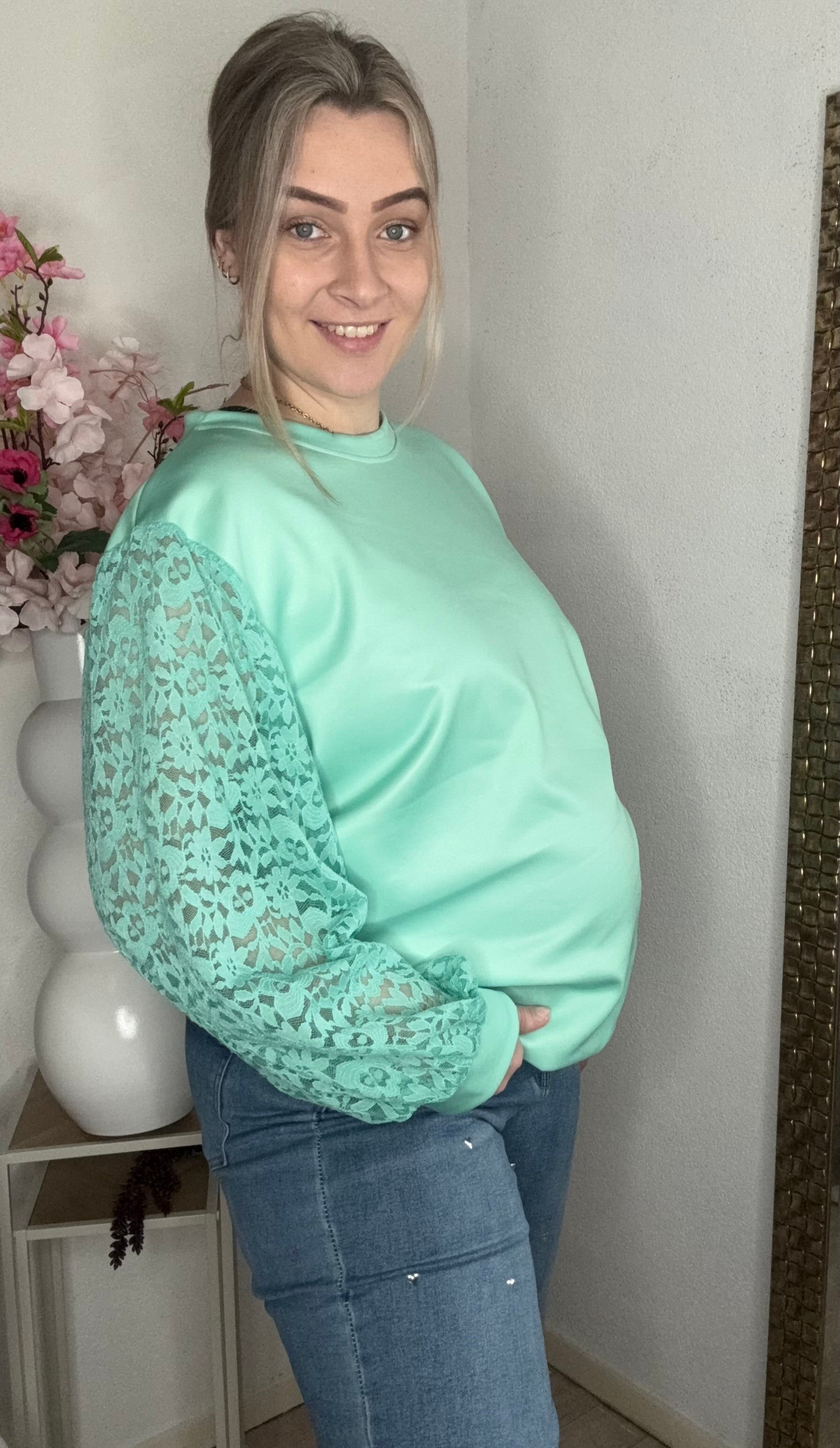 Kanten mouw mint